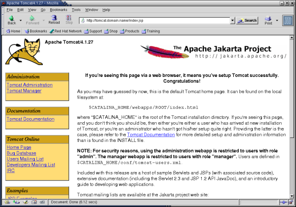Now you can access Tomcat's home page through (replace <hostname> with your hostname):