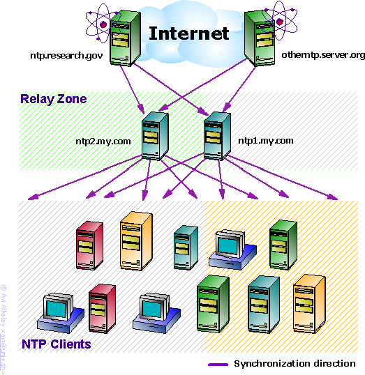 ![]() | It is a good idea to create hostname aliases for your local Relay Servers like ntp1.my.com and ntp2.my.com, and use only these names when configuring the client machines. This way you can move the NTP functionality to a new Relay Server (with a different IP and hostname), without having to reconfigure the clients. Ask your DNS administrator to create this aliases. |