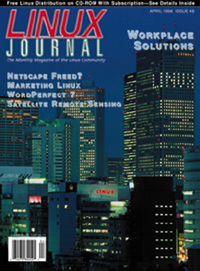 The April issue of Linux Journal will be hitting the newsstands March 6. The focus of this issue is Workplace Solutions with articles on Marketing Linux, WordPerfect 7, Satellite Remote Sensing, Linux in Biomedical Labs and much more. Check out the Table of Contents.