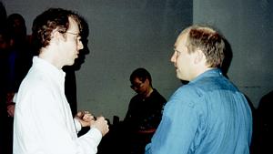 guy in the middle is Matthew Hunt, President of the Linux Users of NY