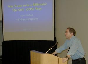 The next session after the keynote which I attended was the "Who wants to be a Billionaire" panel discussion. That's a stupid question, of course I want to be a billionaire. The panel discussion was headed up by the same guy who gave the key note, Steve Wallach. There were three guys on the panel. They were Scott Grout of Chorum, Matt Blanton of Startech and Jackie Kimzey of Sevin Rosen Funds. Scott Grout read his introductory comments and didn't say much else. Basically, he worked for some telecommunications company which went through the venture capital funding round and got itself established. Matt Blanton and Jackie Kimzey gave their remarks which again, I can't quite remember the details of. I'm too lazy to check my notes right now.