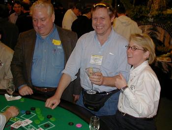That's me with my one big winning hand playing poker. This photo was taken at the SGI party. They gave you 2 grand worth of chips and you got to gamble it away. The chips didn't have any real value, it was basically fake money. It hurts not a bit to loose fake money, but its fun none the less.