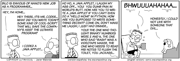 "sendmail"'s configuration file looks like someone's been banging their head on the keyboard. And after looking at it... I can see why! -- Anonymous