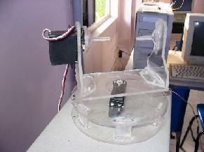 The picture above shows two servo motors - the one at the bottom serving to rotate the platform resting on it - it is this servo which I will be moving with the joystick.