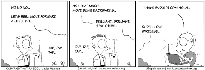 The Ecol comic strip is written for escomposlinux.org (ECOL), the web site that supports es.comp.os.linux, the Spanish USENET newsgroup for Linux. The strips are drawn in Spanish and then translated to English by the author.