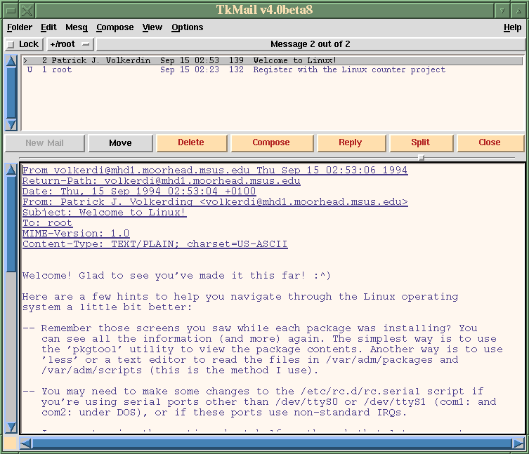 top of the mailx command and did. That produced tkmail 1.x.