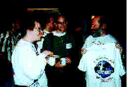 Linus Torvalds, Cyrus Durgin, and Phil Hughes (holding SSC's popular new T-shirt).