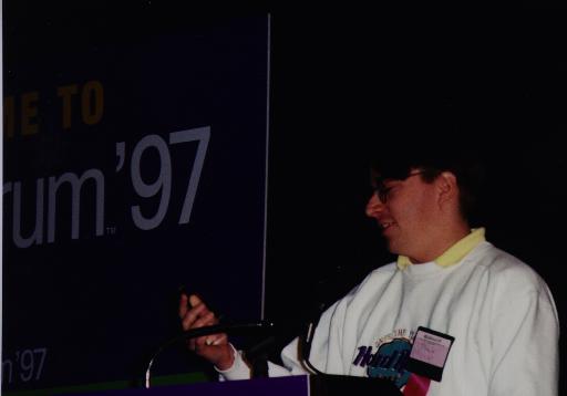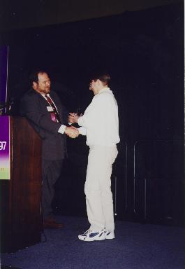 Linus receiving the UniForum Acheivment Award from Douglas Michaels