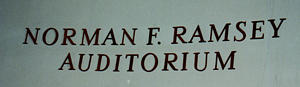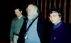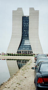 You have to walk through FNAL's main building to get to Ramsey. I got there, went down to the front seats so that I could get a good position from where to take some snaps of Linus giving his talk. I put my notebook down and looked around to see if Linus was around. I was sitting on the right side of the auditorium. I looked over to the left and noticed a cluster of people. The first one who stood out was this guy with rather long beard, and frizzy white hair. It took a minute, but soon realized he was "Mad Dog". Out comes the camera and I walk (rush?) over to the left side of the auditorium, go right up to Mad Dog and take his picture. He looked at me like, who the hell are you! I waved at him or something to try and let him know that I'm a friendly guy, not this weirdo maniac running around taking pictures of strangers. I then turn to my left and sitting amongst a bunch of young guys, I see Linus. I remember the phrase going through my head, "There his is, Linus". He didn't notice me, he was too busy talking to the guys who were sitting next to him. Again, I take my camera, try and get as close as I can, zoom in and snap, I take another picture. I'm in this rather "fanatic" state right now. I'm not really thinking clearly, and all I can seem to do is take pictures of the guys who in reality are total strangers. I stand around and try and take some more pictures. I then go over to Mad Dog, introduce myself, give him my card and ask a bunch of dumb questions he really does not want to answer. Finally, my mental state settles down a bit, and I manage to get myself back over to my side of the auditorium from where I sit down, take out my note book, clear my head, and try to take some sensible notes of the talk.