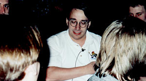 With that final congratulatory announcement, the talk came to an end. People got up and scattered about. I headed over to the left side of the auditorium where Linus and Mad Dog were located. Linus was surrounded by people asking questions. I was out of earshot, so I could not listen to the back and forth between the guys and Linus. I did get a chance to get over to Mad Dog and reintroduce myself. My intent was to invite him out to BNL if and when he and/or Linus got out to NY. I'm not sure if Mad Dog is interested in seeing yet another collider facility, but he did encourage me to try and contact the Bizzar Show people and set up a talk or panel. Something with a topic along the lines of Linux in Physics. I told him I could do that, and I'll try to follow up with the organizers of the Bizzar. I then hung out with the Linus crowd for a bit, taking a couple of pictures. There was this one guy who had on a tee shirt with an Intel logo announcing the i80666 CPU. The phrase "Runs hotter than hell" was written underneath. Linus told the guy he like his tee shirt. This guy then took off his shirt so that Linus could see the back of his tee shirt. It sported a picture of Bill Gates with horns, looking like the devil. After another snap or two, I had my chance to introduce myself to Linus. I gave him my business card (not that I do any business, it's more like an identity card), and thanked him for his work on Linux because it's made our lives some much easier. He replied saying that he did not do it for me, he was just doing it for himself and the users are just a big pain. "Yeah", I replied, "Users are loosers..." I was a bit flush as I was talking to him, I really don't know what I was saying. The fact of the matter is, Linux has made my life a lot more complicated. Ever since I installed Linux on my first PC 3 years ago, (built from parts bought at a computer show), I've been so tied up in this Linux Open Source thing, and it's become such a central theme in my work, that I can hardly say it's made my life any easier. It's made it more fun, and it has save BNL and FNAL a lot of money. It has saved millions of dollars at FNAL alone. But as I said, I really wasn't thinking straight since I was talking to Linus for the first time in my life.