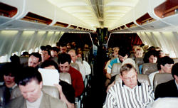 With that, Dan Yocum gets up, and starts the standard Fermi Lab/Ramsey Hall tradition in introducing speakers. He introduces John Hall, and in turn John introduces Linus. (I've seen it worst at BNL where there were 4 introductory speakers ...) John gets up and starts in with this story about how he met Linus 5 years ago at a DECUS meeting in New Orleans. He gave some specifics about getting Linus's trip financed, (I thought I had it tough) and then some detail of Linus at the New Orleans convention. The one bit of John's introduction which stuck in my mind was his piano analogy. If one sits down to play a piano, the pianist can get a feeling for the quality of the piano as he plays it. A rough piano has a rough feeling, a great piano has a great feeling. It's in the touch. At the New Orleans conference, a Linux installation was underway, I believe headed by Mad Dog himself. He heard a voice over his should saying "Can I help you?". It was Linus, offering assistance in getting his Linux kernel up and running. Mad Dog tells the audience that within about 10 minutes, with Linus's help, Linux was up and running. (I can't remember if Mad Dog mentioned the hardware specs of this machine.) In any case, Mad Dog, keyboarding on this machine, was getting that first feel of Linux. 10 minutes later he made a mental note. Linux was going to be inevitable. It has that feel of a great piano. He continues on to talk a bit about his relationship with Linus which is clearly a deep one. With that, he ends and Linus comes up on stage to start his talk. Or rather his question and answer session.