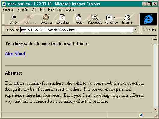 So this is where Linux steps in. The Apache server works in exactly the same fashion on your local 486 Linux box and on your ISP's Sun/Solaris. So you have a fair certainty that if it works for you, it will also work on the Web. This point is particularly important when teaching kids: if what they do doesn't work because they messed up, that's OK. If it doesn't work because of a "technical problem", uh-oh. :-(