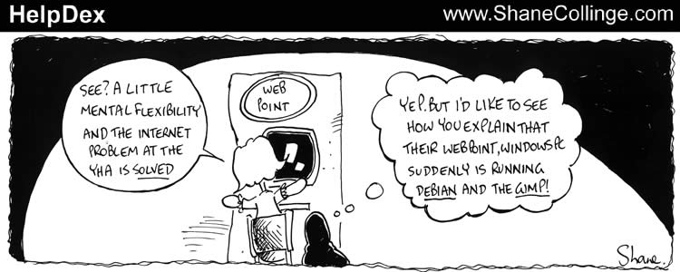 Cartoonist Shane is taking a long holiday in Asia and staying at youth hostels (YHAs). Carol and Tux decided to accompany him....