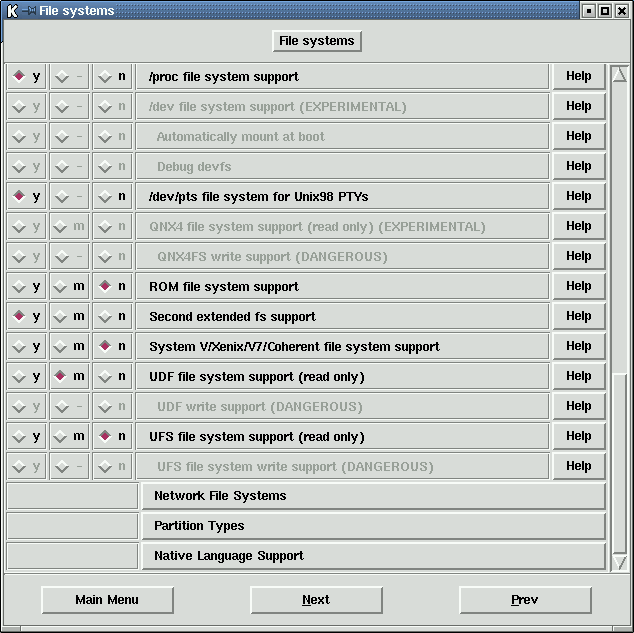 | Figure 1: | The graphical interface for defining your Linux kernel after the command 'make xconfig'. |