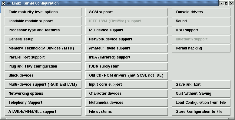 cd /usr/src/linux make xconfig (see Figure 1)