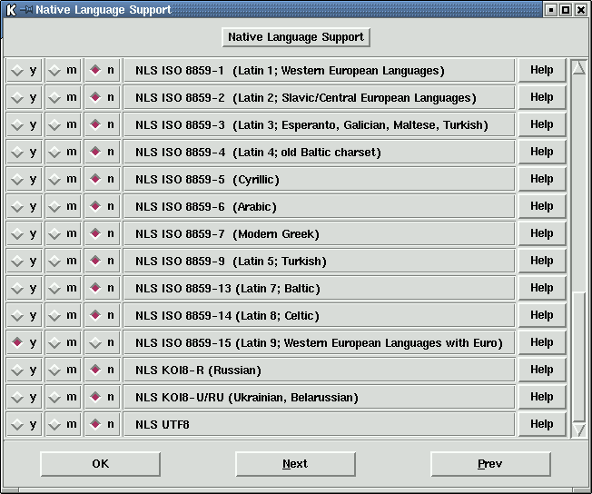 always compiled in. The table 'NLS ISO 8859-1' is the previous