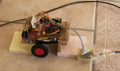 The design of our new robot is very different. It is cheap and you will be able to build it from parts that are available almost everywhere around the world. It is an autonomous robot controlled by an AVR microcontroller. As an autonomous robot (not controlled by a person) we programmed it to run towards the brightest spot in the room.
