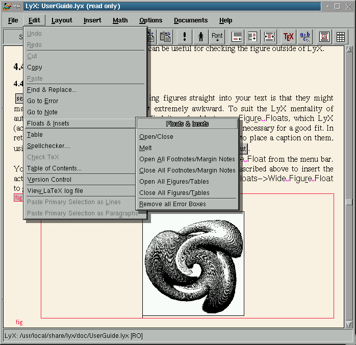 It is important to point out that LyX is a text typesetter, not a text composer. With a word processor, you can place text or a figure wherever you want, or you can choose the exact width of a table cell. That is not possible in LyX. In fact, if you try to insert two consecutive white spaces, the second one will be ignored; the same thing happens if you try to insert two carriage returns. Then, How is it possible to format the text? . LaTeX will do it automatically. To do so, it is only necessary to give some hints about the structure of the text, indicating such things as the enumeration and titles of the sections, where should the figures be, etc..