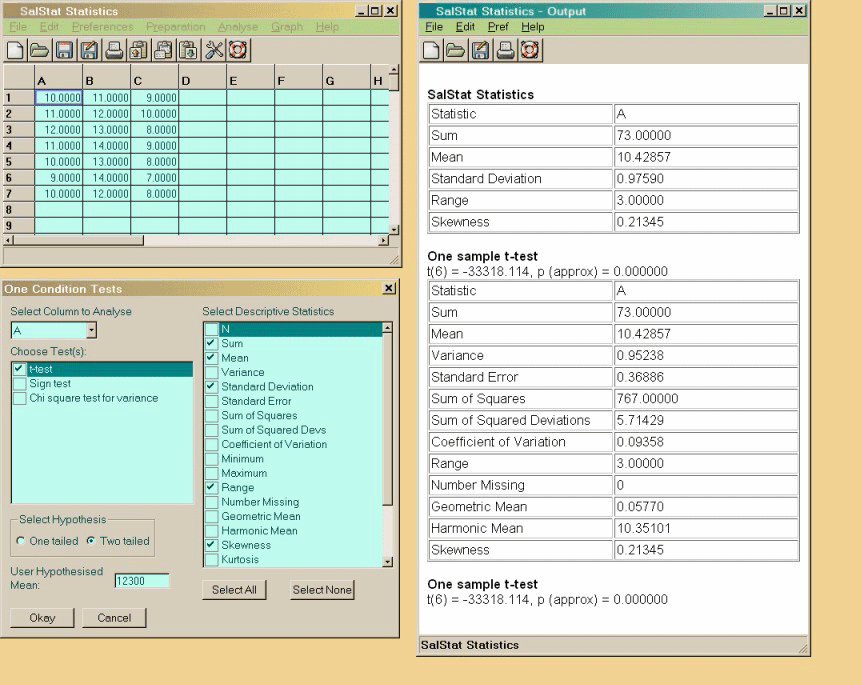 One word of caution: before you jump in and bank on your career as an up-and-coming scientist by using results generated with this program, listen to the recommendations of its creator and convince yourself of its merits by testing it! Those who are just starting with statistics will find many examples in text books - plug some of the available data into SalStat and see what you are getting.The test file (testreport1.txt), which comes with the download, gives you some result comparisons of tests run with other programs.