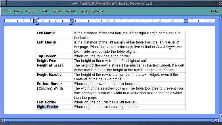 The TED can be downloaded as archive from <ftp://ftp.nluuq.nl/pub/editors/ted> or <http://www.de-does.demon.nl> or <http://www.nllgg.nl/Ted/>. TED is available in binary format (statically linked) or as source code. The later is 1,9 MB (ted-2.8.src.tar.gz) in size and needs Motif for compilation. My experience is that Lesstif.0.88-9 produced also very good results. After compilation and striping (command strip) the binary you get a 1 MB big executable. The Ted contains also a spell checker in american English. Different dictionaries for other languages can be downloaded separately. In addition to binary/source-tar archives TED is also available as RPM package.