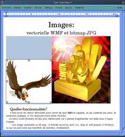 - picture inserts a vector or bitmap image: and Ted accepts 13 different formats. The types .ico, .bmp, .wmf are the formats that Windows uses and it facilitates of course the document transfer. The pictures are treated by Ted like a single character, at least with regards to orientation and on the page. The size can be changed thanks to 8 movement points on the border of the picture. These points are visible when double click with the mouse on the image.
